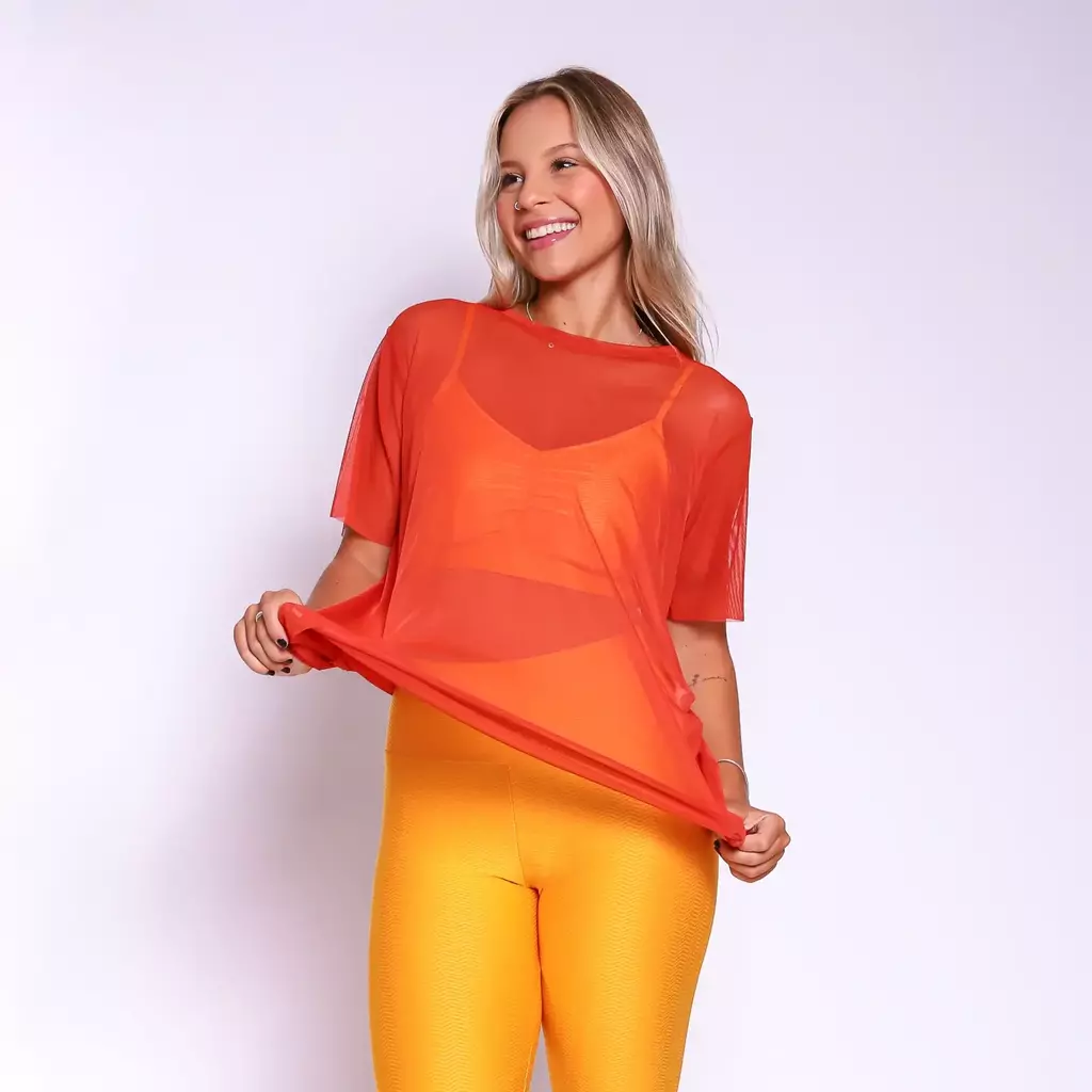 O Blusão de Tule é uma roupa semitransparente, delicada e versátil que fica bem com muitas outras combinações de roupas e conjuntos. Tem uma modelagem maior em largura e comprimento, que veste de tamanhos P até G, servindo para criar de estilos oversized até estilos bem ajustados em corpos maiores.