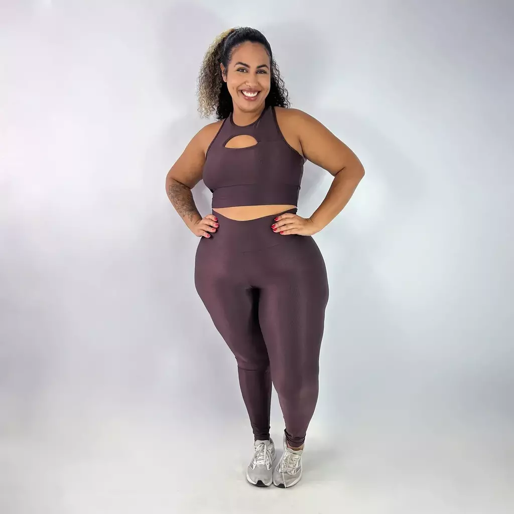 O aveludado de compressão é um tecido altamente elástico e respirável, e conta até mesmo com proteção UV+, garantindo conforto para fazer as atividades físicas. O fator de compressão faz com que o tecido se ajuste bem ao corpo e disfarce celulites e imperfeições.