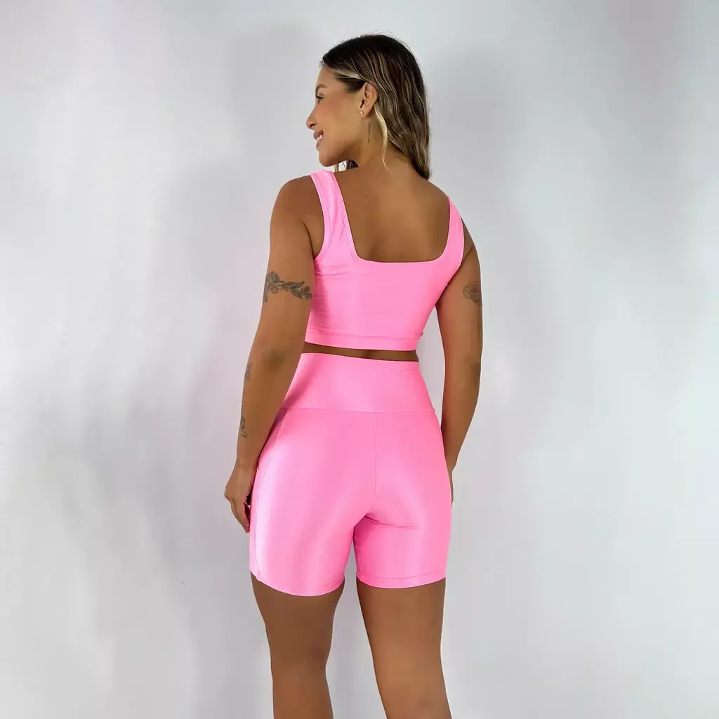 O aveludado de compressão é um tecido altamente elástico e respirável, e conta até mesmo com proteção UV+, garantindo conforto para fazer as atividades físicas. O fator de compressão faz com que o tecido se ajuste bem ao corpo e disfarce celulites e imperfeições.