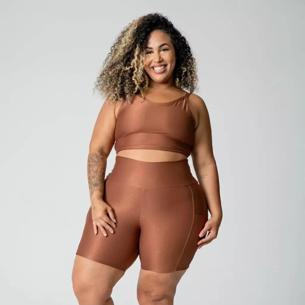 O aveludado de compressão é um tecido altamente elástico e respirável, e conta até mesmo com proteção UV+, garantindo conforto para fazer as atividades físicas. O fator de compressão faz com que o tecido se ajuste bem ao corpo e disfarce celulites e imperfeições.